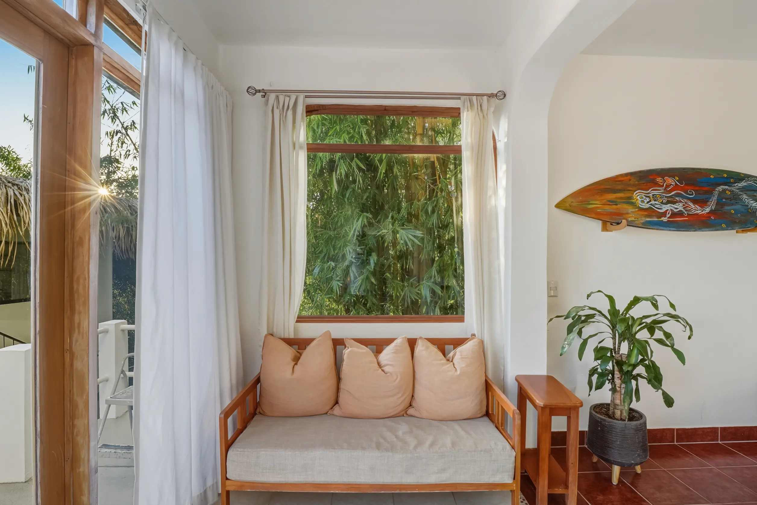 Karma 4 is a peaceful ocean-view room designed for rest and recovery. It features a king bed that can be separated into two twin beds, allowing for flexible sleeping arrangements. With a private bathroom, air conditioning, a mini fridge, coffee maker, and an air diffuser, Karma 4 offers a calm space after full days of movement and connection.